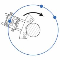 Método ideal para máquinas acopladas en las que los ejes se giran manualmente a cualquier posición. Con la función EasyTurn™ puede comenzar el proceso de medición en cualquier punto del giro. Puede girar el eje en tres diferentes posiciones separadas tan solo 20° para registrar los valores de medición. Esta es una versión más fácil de usar que el método de tres puntos (consulte 9–12–3).