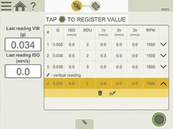 Registro automático de los valores de medición durante el barrido continuo del eje. La forma más rápida y sencilla de conocer el estado de alineación de máquinas acopladas. Cientos de puntos registrados. Inicie el registro, gire y pare en cualquier ángulo: obtendrá los resultados instantáneamente. Se incluye un control de calidad de la medición (vea el ejemplo que aparece abajo a la izquierda).